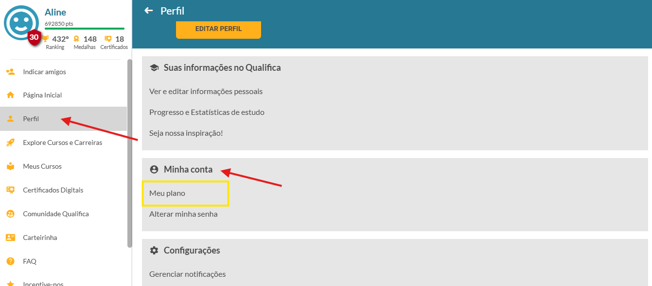1. Acesse o Perfil dentro da plataforma.