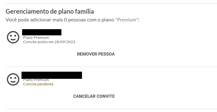 3. Role a página até o final e verifique a seção "Gerenciamento de Plano Família".