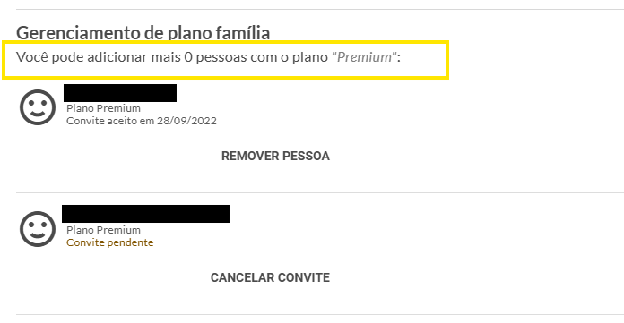 "Você pode adicionar mais XX pessoas com o plano Pro/Premium".