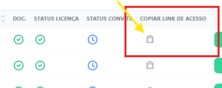 4. Role a tabela para a direita até encontrar a coluna "Copiar o Link de Acesso". Clique no ícone de cópia para copiar o link.